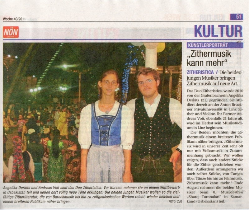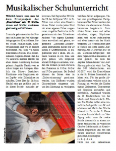Das Projekt "Kreativ Klasse" wurde im Schuljahr 2016/17 in St.Pölten gestartet. Die 2b der VS Grillparzer 1 in St. Pölten wurde dazu von der Musik- und Kunstschule St. Pölten mit eingens dafür angefertigten Kinderzithern ausgestattet. Aufgrund des durchschlagenden Erfolges wird dieses Projekt ab dem Schuljahr 2019/20 auf beide zweiten Klassen erweitert.