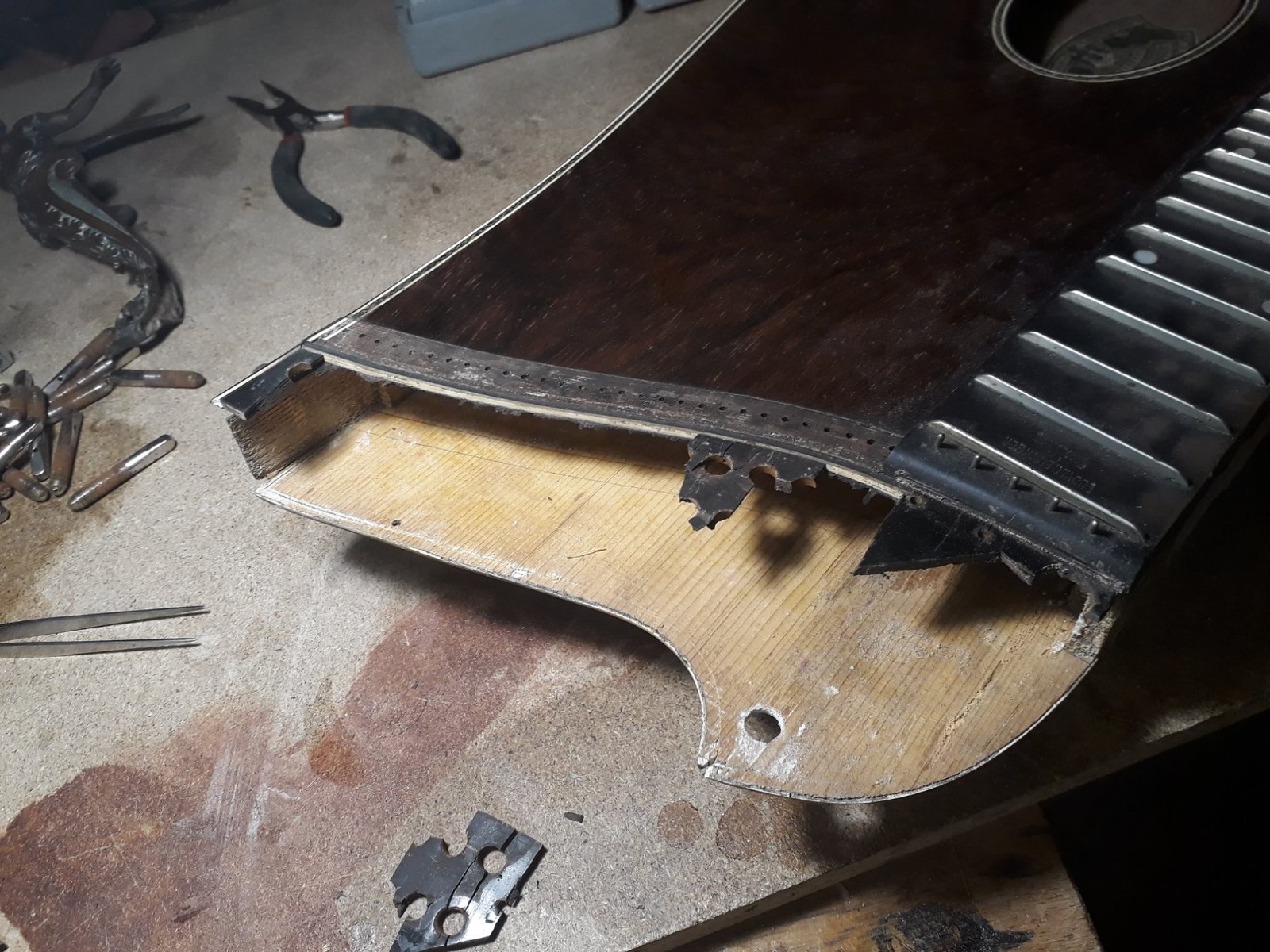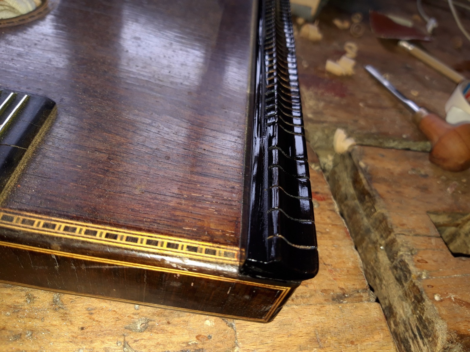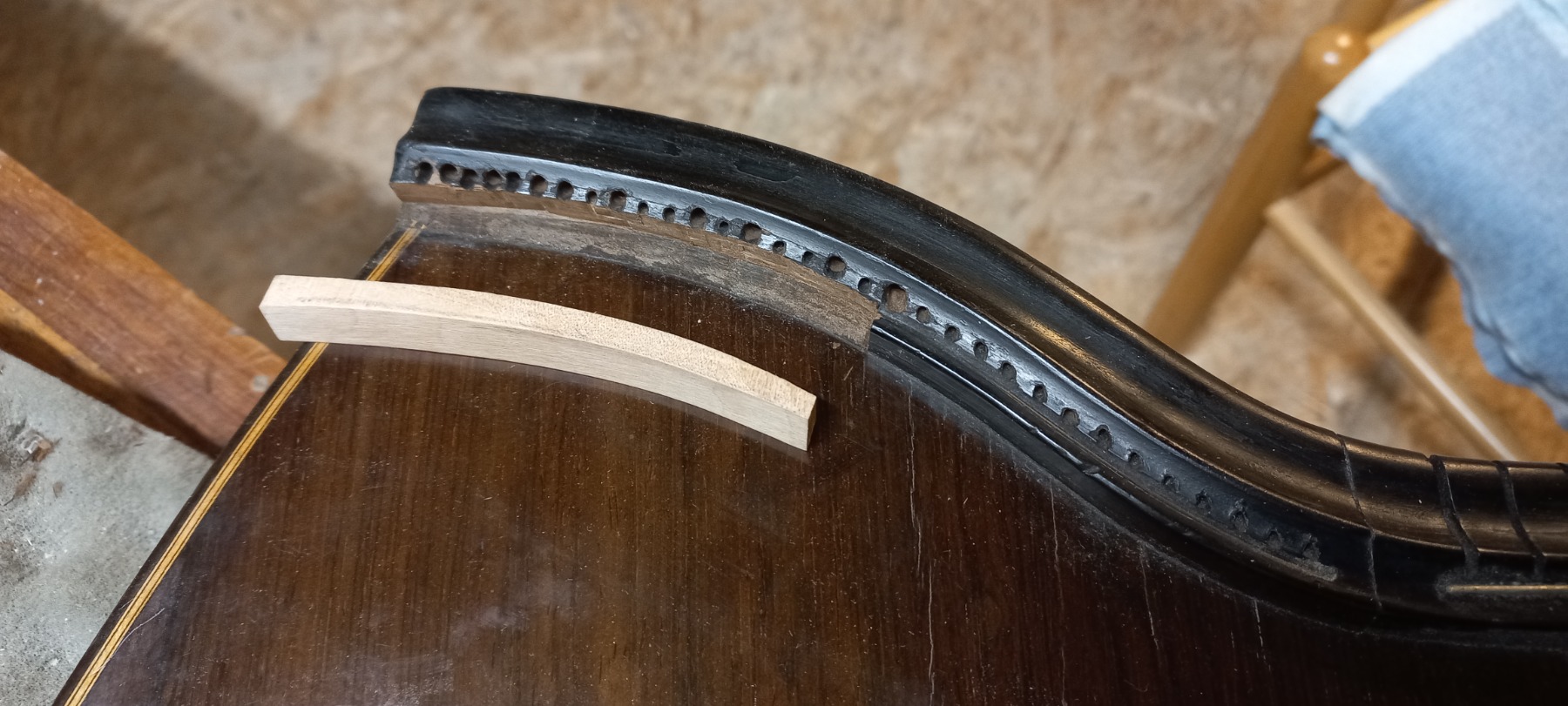 Von Saiten aufziehen, über Griffbrett abrichten, Rissreparaturen, Lackarbeiten, Restaurierung und auch Rekonstruktion ist alles möglich